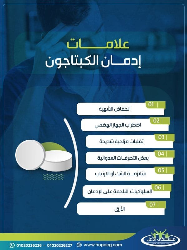 نناقش سوياً ايضاً ماهي طرق علاج الكبتاجون في مستشفى الأمل ونجاوب على السؤال المتكرر كيف اتخلص من ادمان الكبتاجون، نستعرض افضل طريقة علاج مدمن الكبتاجون والتغلب على مدة اعراض انسحاب الكبتاجون دون الم.