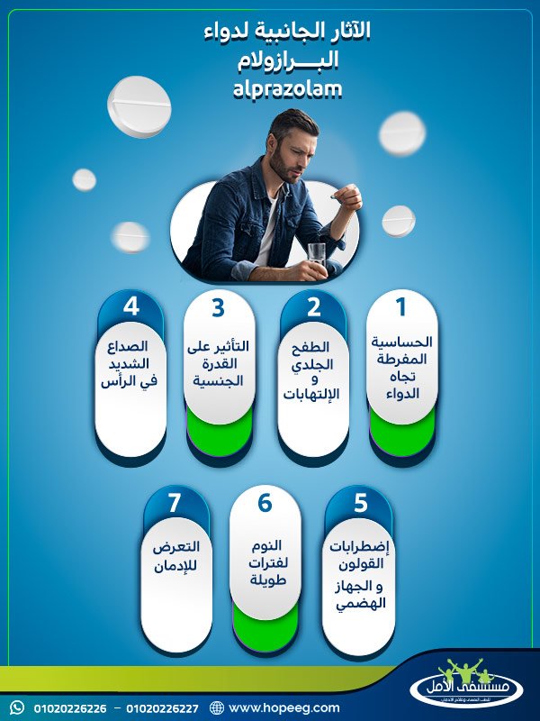 ما هي أشهر الآثار الجانبية المترتبة علي استخدام أقراص البرازولام alprazolam؟