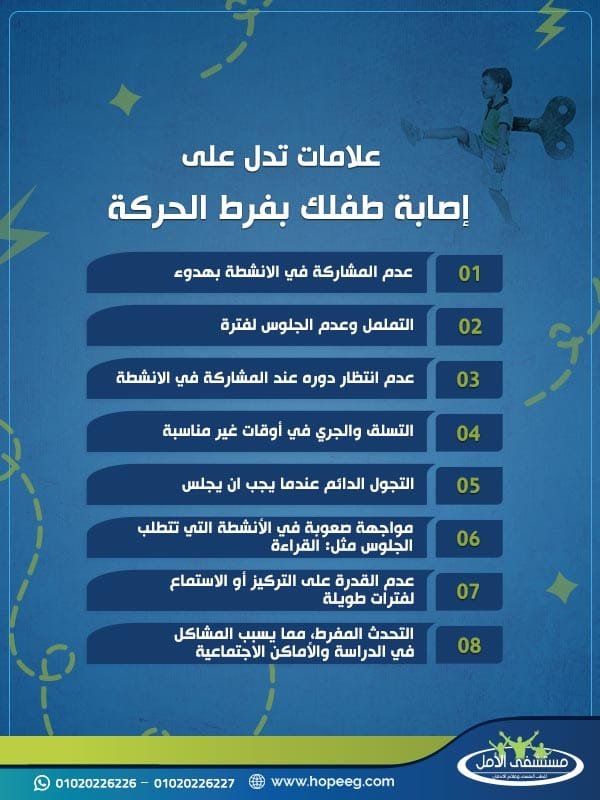 وهناك بعض العلامات التي توضح إصابة طفلك بفرط الحركة، وتشمل:-