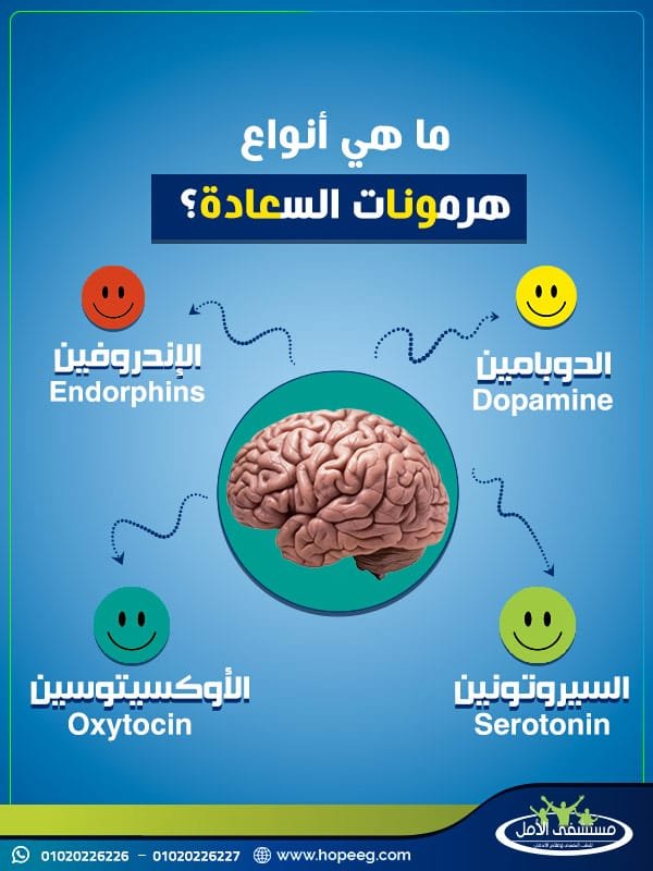 تتعدد انواع هرمونات السعادة في الجسم، ويختلف دورها في الدماغ، وتشمل مايلى:-