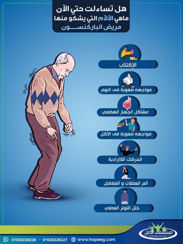 لذلك يمكنك أن تتعرف على بعض الأعراض الثانوية الأكثر شيوعاَ، والآلام التي يشكو منها مريض باركنسون:-