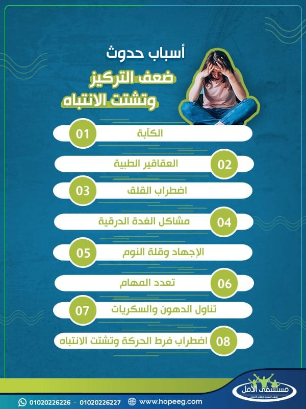 لذلك إذا كان لديك أحد المقربين يعاني من ضعف التركيز وتشتت الانتباه، بادر بمساعدته من خلال التواصل مع الطبيب النفسي، ومعرفة السبب الرئيسي لضعف التركيز واتباع العلاج.
